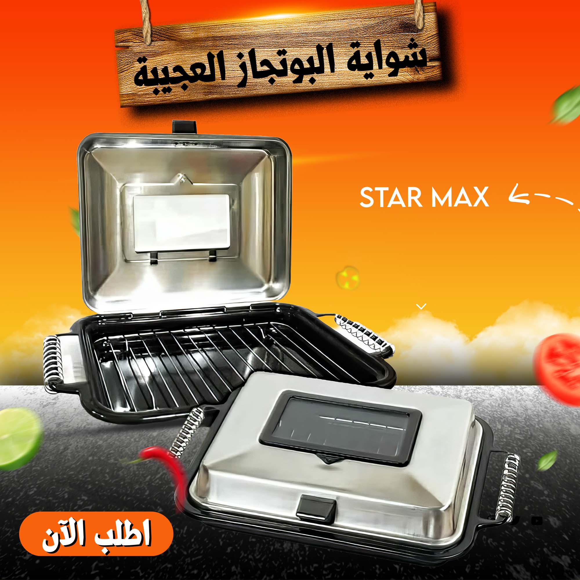 - شواية بوتجازSTAR MAX من غير فحم معاكي في بيتك بتشوي بيها بسهولة على البوتجاز من غير دخان و بأقل مجهود هتوفري كهربا و فحم و هتعملي لأولادك كل الأكل اللي بيحبوه صحي و شهي.